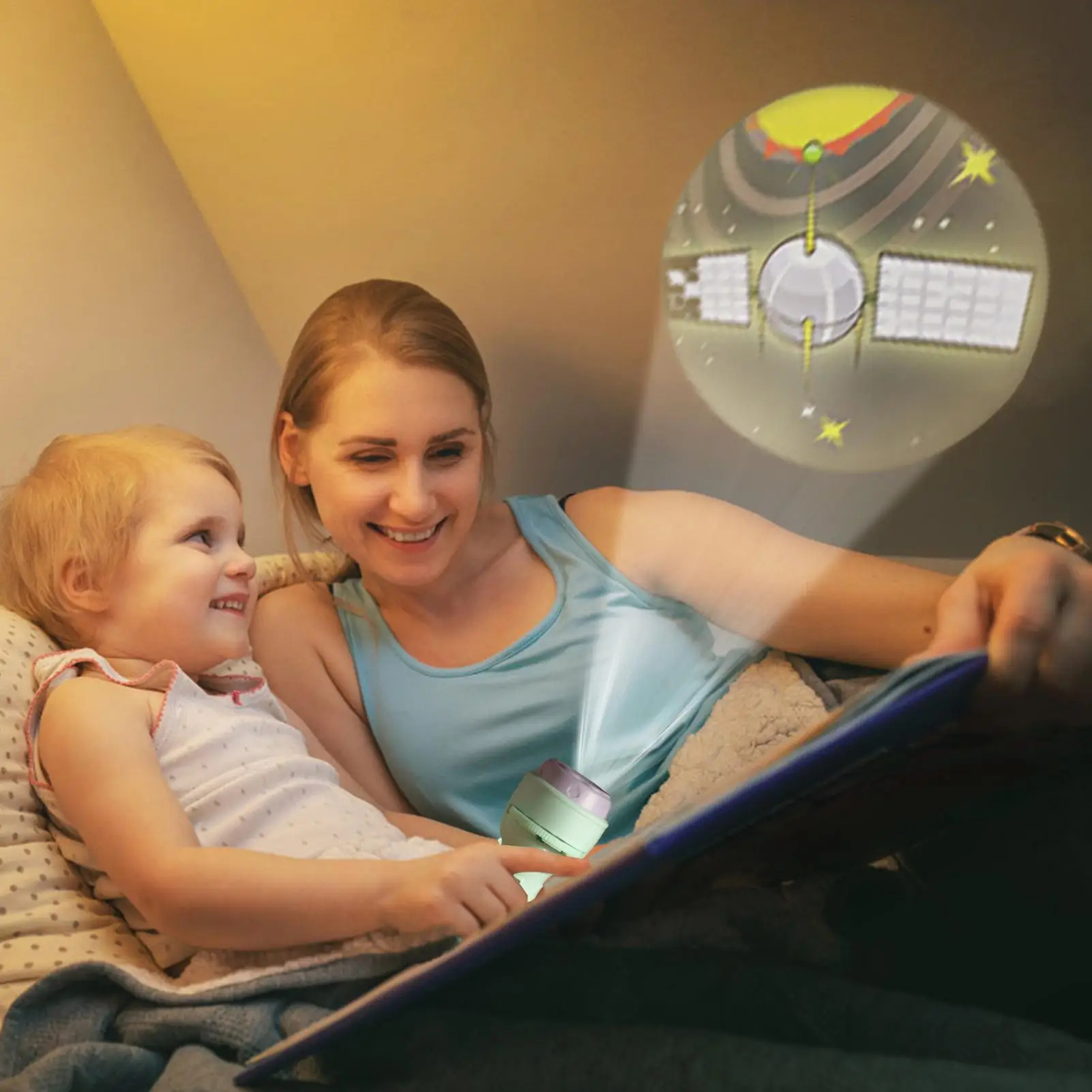 Look no further than our Toddler Flashlight Projector! With its gentle rotating head and soft light, this projector is the perfect way to help your little kids cognize and learn while having fun.